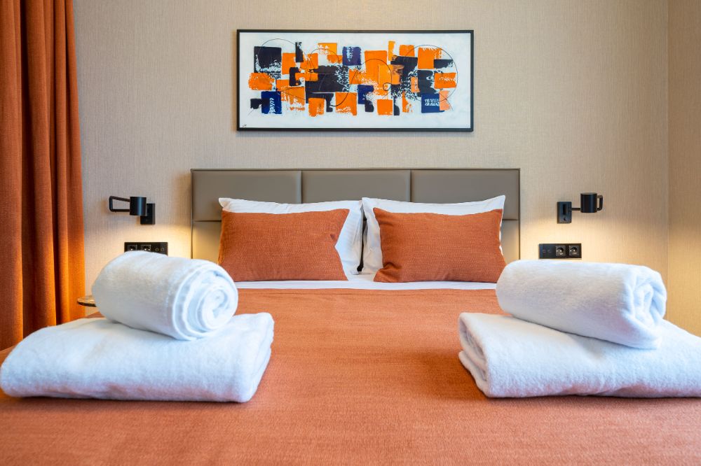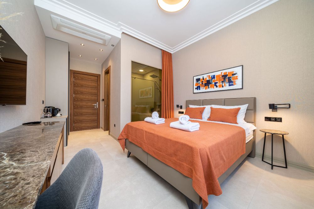 It includes a private bathroom with a shower, hairdryer, slippers, and complimentary toiletries. The unit is air-conditioned and equipped with a flat-screen TV, minibar, soundproofing, and tea and coffee facilities.