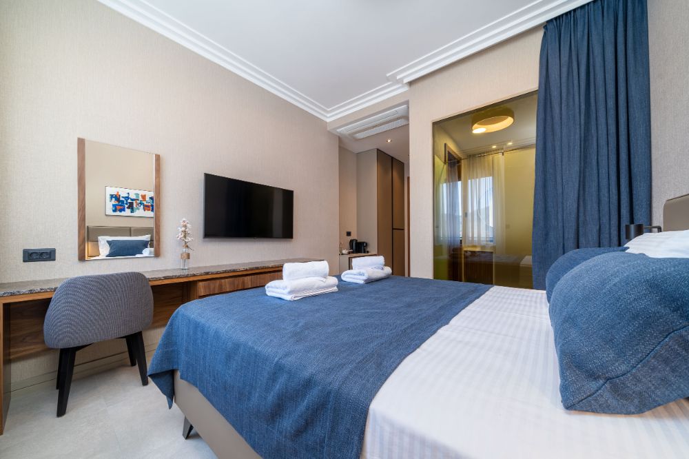 The unit includes a private bathroom, air conditioning, flat-screen TV, minibar, soundproofing, and tea and coffee facilities.